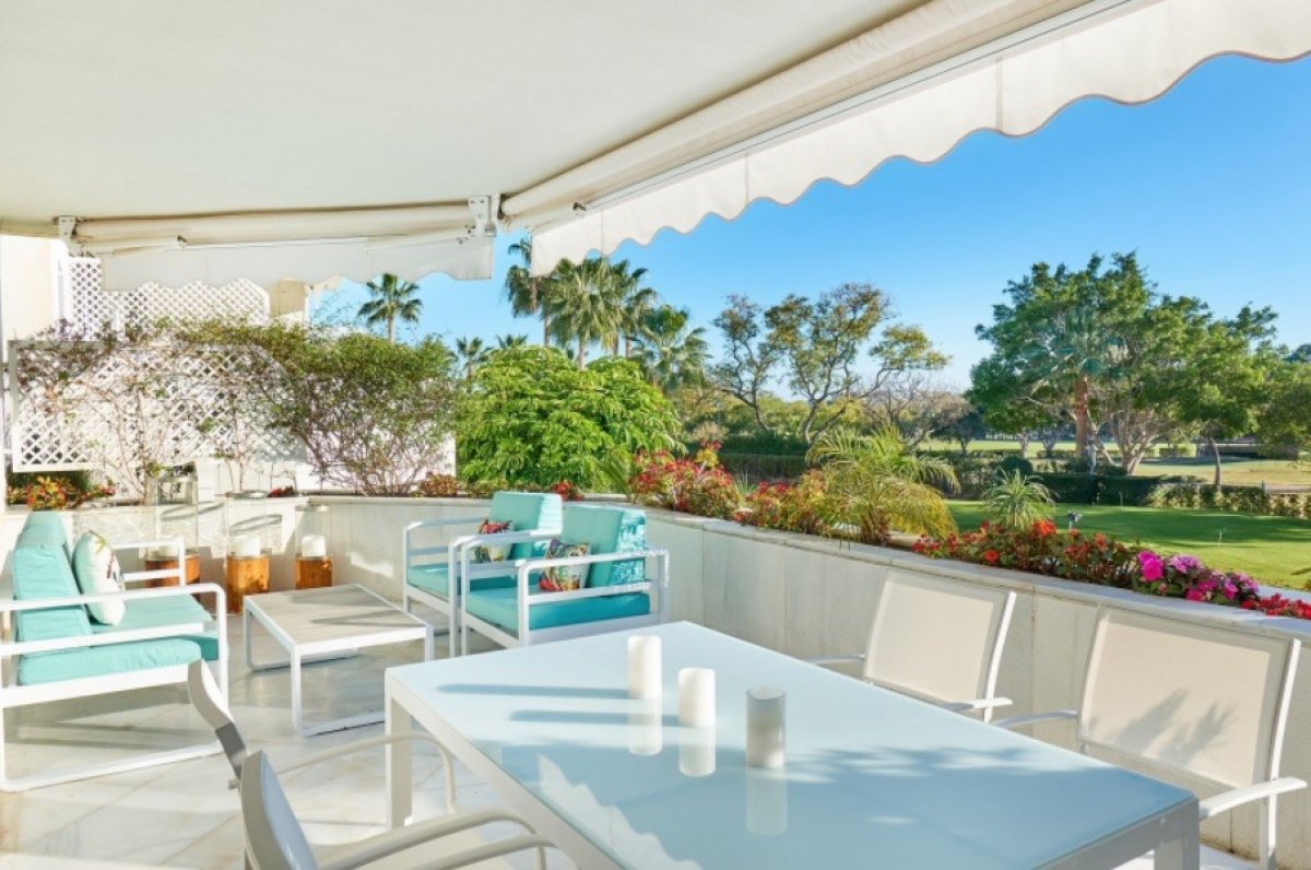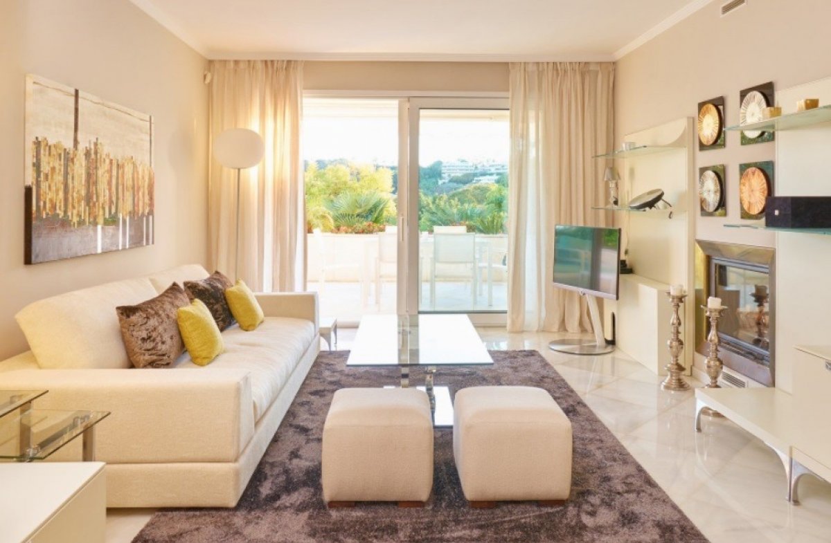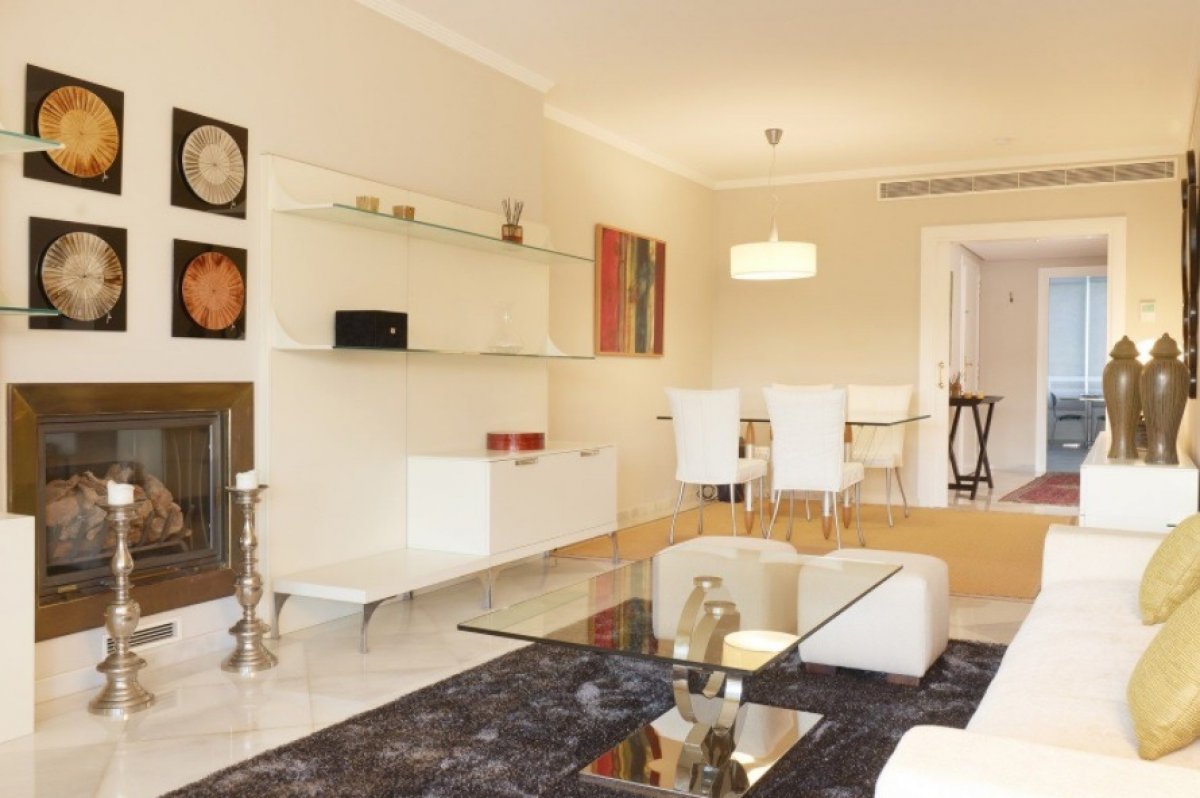 Hermoso y luminoso apartamento con orientación oeste dentro de una residencia segura en el corazón del paraíso de los golfistas de Nueva Andalucia, a unos 6 km al oeste de Marbella, a pocos minutos del puerto deportivo de Puerto Banús, muy cerca de varios campos de golf de primera clase y numerosas tiendas instalaciones. El complejo tiene un servicio de seguridad las 24 horas.. . Este apartamento de lujo en el primer piso ofrece 2 habitaciones dobles con baño en-suite y un aseo para invitados. El gran salón / comedor con chimenea conduce a una amplia terraza muy bonita con vistas a la piscina, al jardín tipo parque y al campo de golf de Las Brisas. En el mismo nivel se encuentra la gran cocina totalmente equipada con electrodomésticos Miele y zona de desayuno, lavadero, sala de calderas y despensa.. . Las características de alta calidad incluyen: suelos de mármol, calefacción central, aire acondicionado frío / calor, toldos eléctricos, alarma, TV vía satélite, una plaza de garaje y un trastero. El área común del complejo ofrece una casa club, piscina cubierta, gimnasio, sauna, jacuzzi y baño turco. Esta hermosa propiedad cumple con las más altas exigencias.