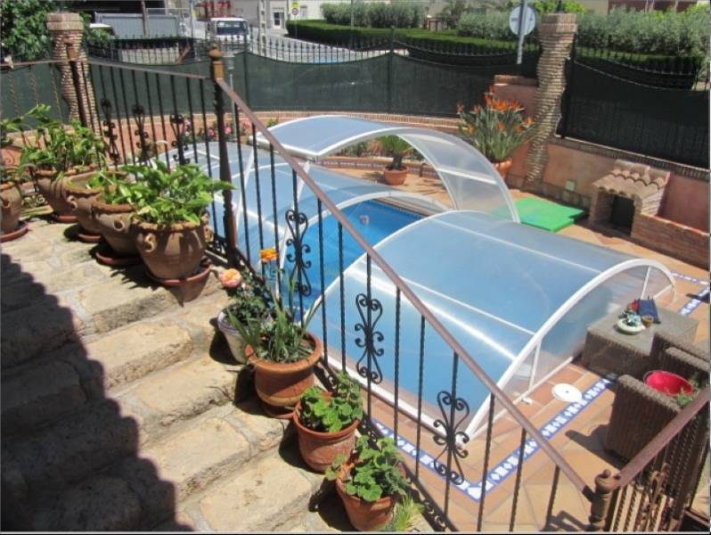 Chalet en Elche, en zona Valverde a unos 5 kilómetros de la playa, con todos los servicios cerca. . La casa tiene 430 m2 de superficie construida, en una parcela de 500 m2 y con dos terrazas, una de 15m2 y otra de 40m2. Cuenta con 5 habitaciones dobles, 5 baños, salón comedor, cocina independiente, sótano de 125m2, galería y despensa. La propiedad está en excelentes condiciones dotada de suelo de gres, carpintería exterior de madera, aire acondicionado , armarios empotrados, chimenea, etc.... En la parcela nos encontramos con un bonito jardín, un aparcamiento para coches y una hermosa piscina privada, que podrá disfrutar tanto en verano como en invierno, ya que tiene un cobertor que se puede poner o quitar.