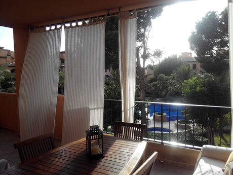 EN COMPLEJO RESIDENCIAL DE LUJO Y FRENTE AL CAMPO DE GOLF MAIORIS SE VENDE FABULOSO APARTAMENTO!. Se encuentra localizado en la prestigiosa Urbanización de Puig de Rós, a 21 km de Palma y 15 mn. del aeropuerto. . Cuenta con todos los servicios necesarios como supermercado, farmacia, colegios, guarderías, academias, gimnasio, centro comercial, etc.. El complejo está dotado de piscinas comunitarias, baños, duchas, zonas verdes y ajardinadas, salón social, zona de juegos infantil, etc. Muy bien cuidado y mantenido. Con videovigilancia.. El apartamento se distribuye en salón comedor con acceso a la terraza de 25 m2 con vistas a las piscinas, cocina amueblada y equipada con electrodomésticos de alta gama, dos dormitorios muy espaciosos con grandes armarios empotrados y vestidos. Dos baños completos, uno de ellos en suite y el otro con plato de ducha y pared forrada de gresite. Puerta de entrada blindada. Sistema de frío y calor por conducto. Cerramientos de aluminio y climalit. Persianas de aluminio. Videoportero. Suelos de gres rústico. Totalmente amueblado. Plaza de parking de 15 m2 y trastero de 7 m2.. A qué esperas para venir a visitarlo? LLÁMANOS! .