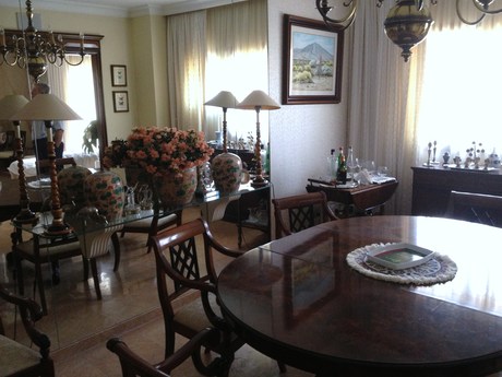 Estupendo piso en pleno centro de Santa Cruz de ocupa toda la planta del edificio con 226 m² útiles que se distribuye en 2 salones con una terraza, dos salas de estar, 1 suite con vestidor y baño, 3 habitaciones dobles con armarios empotrados, dos baños y un aseo, habitación para el servicio, cocina amueblada y equipada con solana y despensa, varios armarios empotrados adicionales distribuidos por la casa. Aire acondicionado central en todo el piso. El edificio dispone de una zona común privada para juego de niños. Incluye una azotea privada de 50 m² con cuarto lavadero, dos plazas de garaje y dos cuartos trasteros.