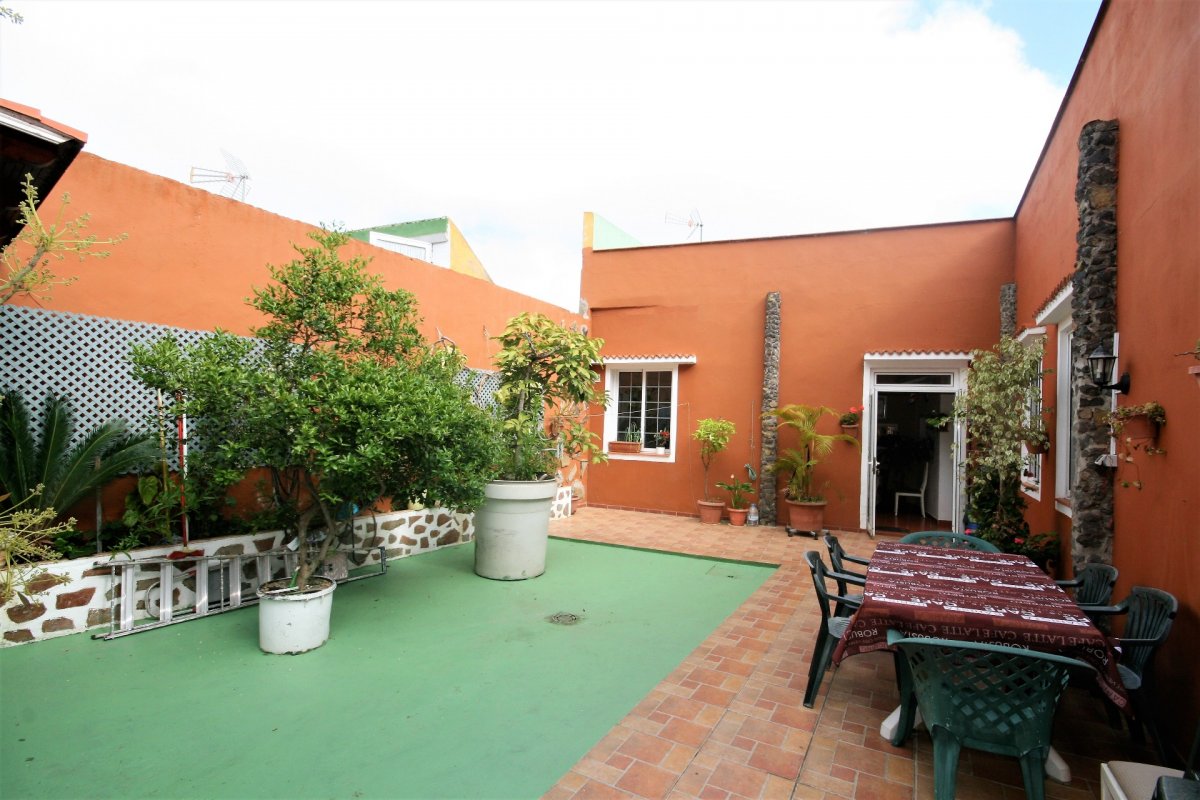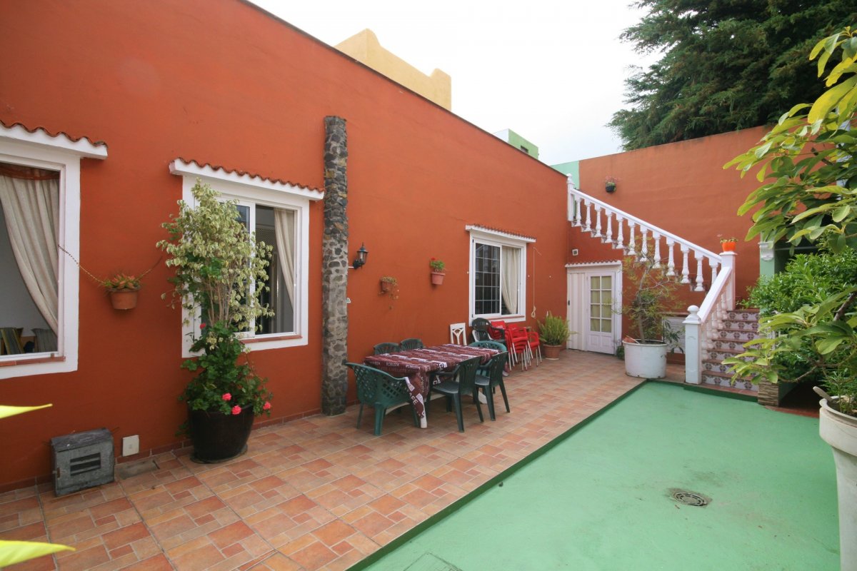 Estupenda casa terrera en la parte alta de La Orotava totalmente reformada hace pocos años sobre una parcela de 236 m2 en una sola planta que se distribuye en 151 m2 de vivienda más unos 80 m2 de patio y una azotea transitable que cubre toda la zona de vivienda. Dentro encontramos 4 dormitorios, tres de ellos dobles, el principal en suite con baño y vestidor, el cuarto dormitorio utilizado como despacho y zona de estudio, más un segundo baño, un comedor y la cocina amplia totalmente amueblada y equipada. Tiene un patio central en el que hay una zona de terraza y una pequeña barra con barbacoa ideal para celebraciones y un aseo. Desde el patio se accede a una azotea transitable con estupendas vistas al mar y al Teide. Cristales dobles en los dormitorios, instalación eléctrica actualizada (dispone de un segundo cuadro independiente para una de las estancias), lista para ser habitada, bien conectada por guaguas a 5 minutos del centro de La Orotava. Venga a verla