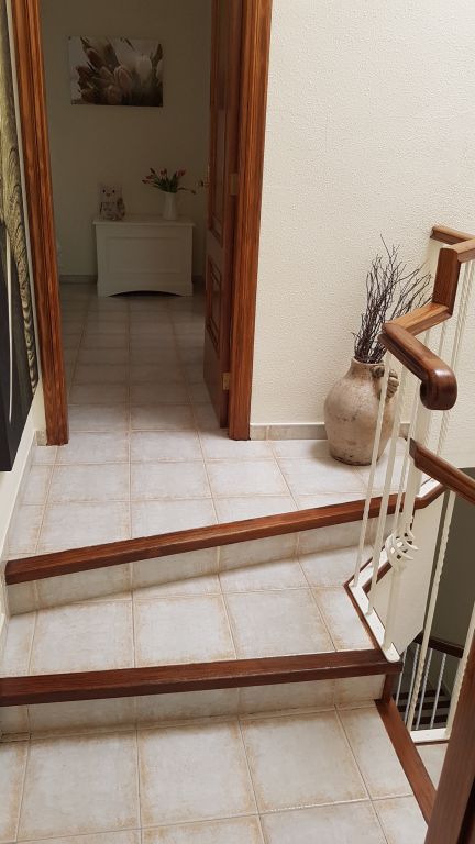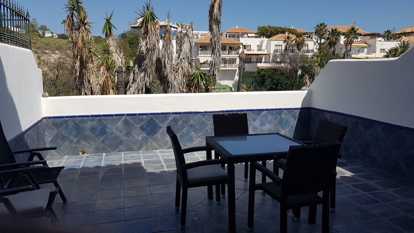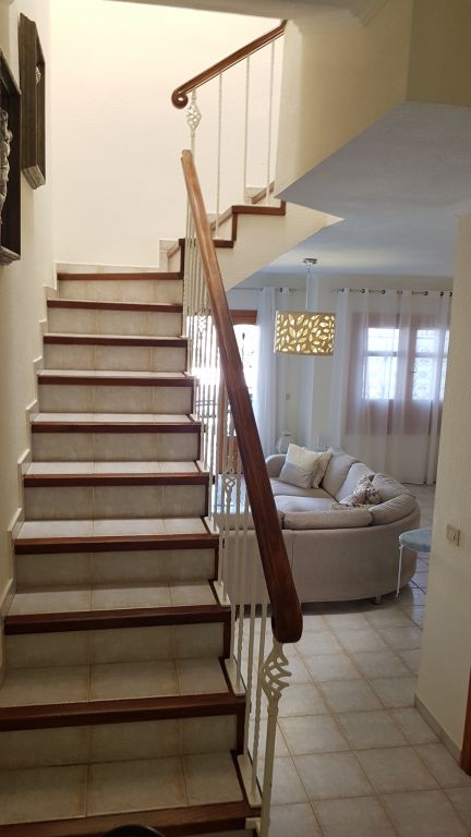 Duplex adosado Los Halcones , Chayofa. Una impresionante y moderna adosado dúplex, situada en la zona residencial de Chayofa, en el complejo Los Halcones, a sólo 5 minutos en coche de las playas y el centro de los cristianos. La casa está en dos plantas. en la planta baja: una sala de estar muy espaciosa y luminosa, una cocina independiente completamente nueva y equipada. Una terraza en la entrada de la casa y una gran terraza soleada en la parte trasera con vistas a los jardines y la zona de la naturaleza. Arriba hay dos dormitorios (uno con balcón), ambos con armarios empotrados y cada uno con un nuevo baño en suite. La propiedad se vende parcialmente amueblada pero negociable. Un aparcamiento subterráneo privado está incluido en el precio. La comunidad tiene una bonita zona de piscina, que será completamente renovado en septiembre, sin costo adicional para los compradores. El costo de la comunidad es de sólo 85 euros al mes. Interior 95 m2 terrazas 49 m2..
