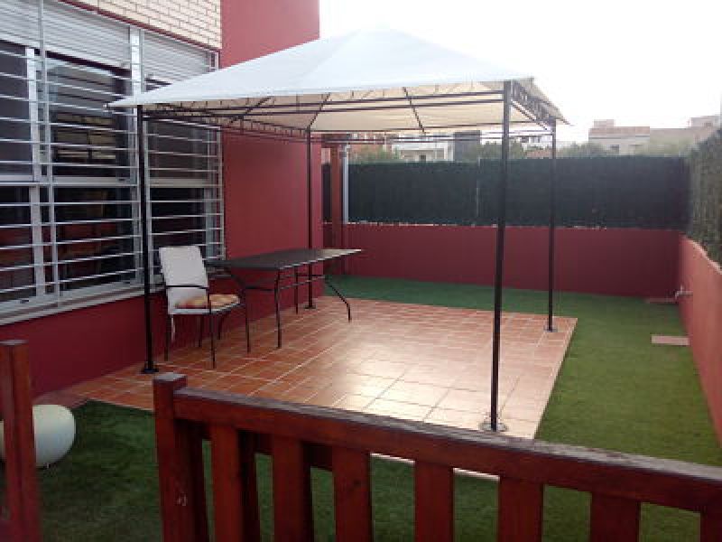 Casa Adosada rodeada de amplias zonas ajardinadas. Situada cerca de Burriana y a tan sólo 10 minutos de la playa en coche. Esta magnífica vivienda de 2 alturas con una parcela de 220m2 y 120 m2 construidos, dispone 3 habitaciones 3 baños, una cocina office totalmente equipada con electrodomésticos y galería. Un amplio salón comedor con estufa de hierro fundido de 13kw, que calienta toda la vivienda. Totalmente exterior con grandes ventanales. Esquinero. 1 jardín trasero de 60 m2 con porche de dos aguas de 40m2. 1 jardín delantero de 60m2 con pérgola. Todas las ventanas y puerta de cocina con mosquiteras instaladas por personal profesional. Carpintería de aluminio en ventanas y puertas de marca TECHNAL, con cristal de seguridad. Saneamientos de la marca ROCA. Pavimentos y revestimientos de PORCELANOSA. Verjas de hierro macizo en todas las ventanas así como en puerta de cocina. Instalación de Alarma de seguridad. Número de tomas de Tv 7. Número de tomas de Teléfono 5. Armarios empotrados vestidos de suelo a techo. Zapatero con baldas extraibles de techo a suelo de dos puertas. Barbacoa exterior. Vivienda muy fresca en verano y caliente en invierno. Zona muy tranquila y con muy buena conexión a N340, A7 y AP7. Lista para entrar a vivir. Se vende totalmente equipada excepto decoración personal como cuadros etc. Conectada con sistema de Seguridad en la actualidad. de Teléfono e . Los electrodomésticos se quedarían todos en la vivienda. Posibilidad de hacer una piscina. Zona de jardín en la parte de delante, trastero, zona de barbacoa en la parte trasera, parkings etc.. .