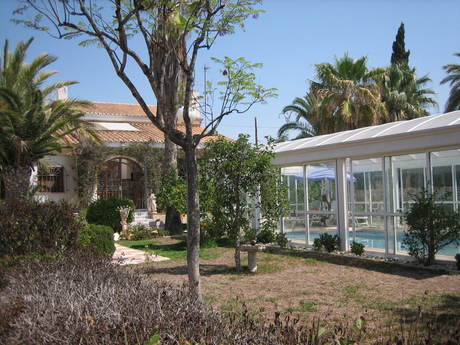 CHALET DE LUJO EN LA FONT, A 400 m de la playa, a 10 minutos andando del Centro Comercial Carrefour, y del Centro Comercial Villamarco. Muy bien comunicada por carretera, junto a la N-332 y tranvía a 400m.. El chalet consta de 3 alturas. En PLANTA BAJA hay 3 dormitorios con armarios empotrados, cocina amueblada, amplio salón comedor con chimenea, y dos cuartos de baño completos con bañera. En PLANTA SOTANO hay una amplia sala con mesa de billa Francés y una barra de bar, un cuarto de baño con ducha, Bodega y garaje para tres vehículos. En PLANTA 1ª hay una amplia sala.. Suelos de toda la casa gres. Carpintería exterior de madera abatible y rejas decorativas en todas las ventanas. Carpintería interior de madera.. Parcela de 1.492 m2 con zona ajardinada, 3 cenadores, PISCINA CUBIERTA, 2 barbacoas, una interior y otra exterior. Caseta lavadero..