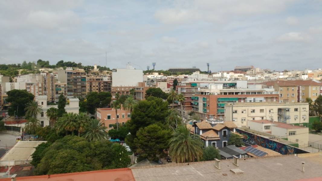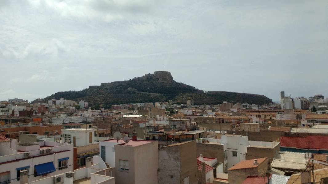 Bonito piso reformado con increíbles vistas a los castillos de Santa Bárbara y San Frenando y el estadio José Perez, desde todos los rincones del hogar.. . Piso en la última planta de una finca de 7 alturas con ascensor.. . El mismo cuenta con 114 metros construidos distribuidos en hall de ingreso, 3 habitaciones (2 dobles y una simple) , amplio salón- comedor luminoso y con lujosos muebles empotrados, cuarto de baño completo con ducha, cuarto de aseo, y amplia cocina con electrodomésticos y galería.. . Las habitaciones dobles cuentan con armarios empotrados. Todos los ambientes son exteriores. . Vitro en la cocina.. . . Excelente zona residencial a solo 5 minutos de plaza de toros y el centro de la ciudad de alicante y rodeada de todos los servicios necesarios como farmacias, gasolineras, centros médicos, etc.. . Frente a la finca hay zona de aparcamiento gratuito por lo que esto no es un inconveniente.. . . . VISÍTELO!!!!!. .