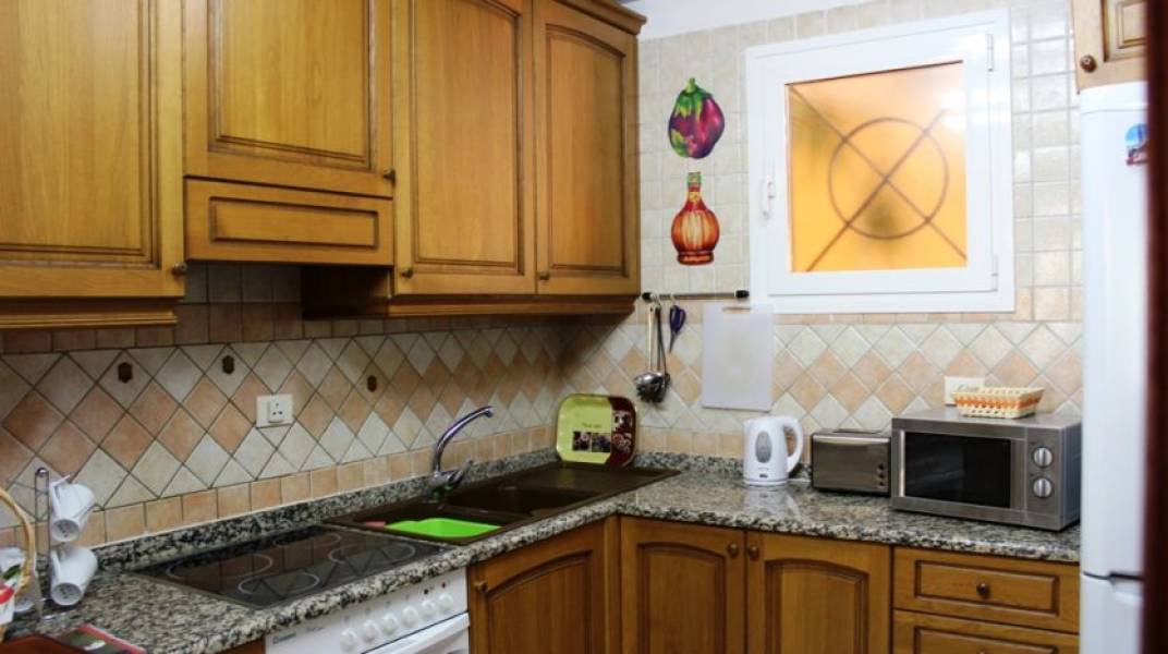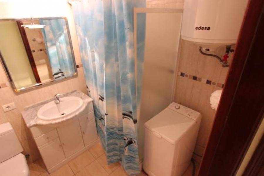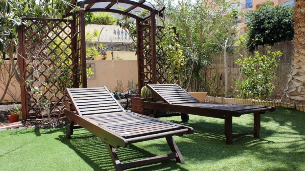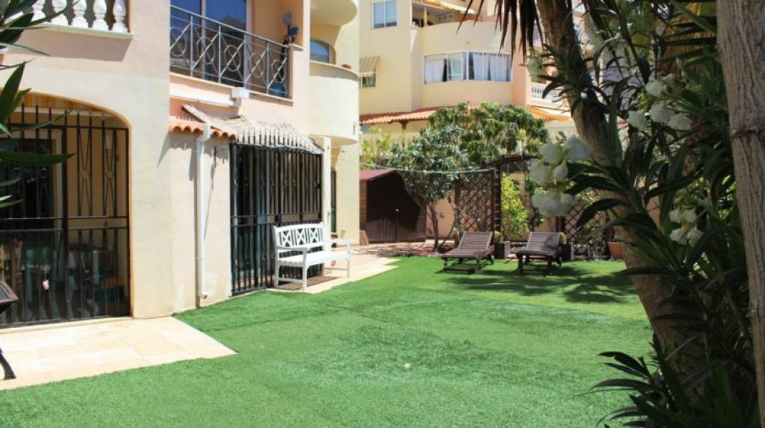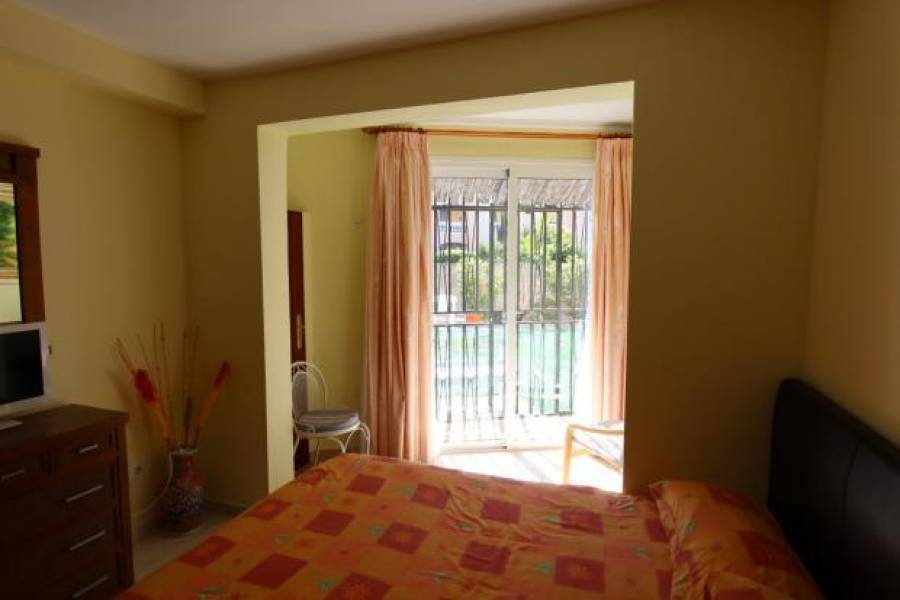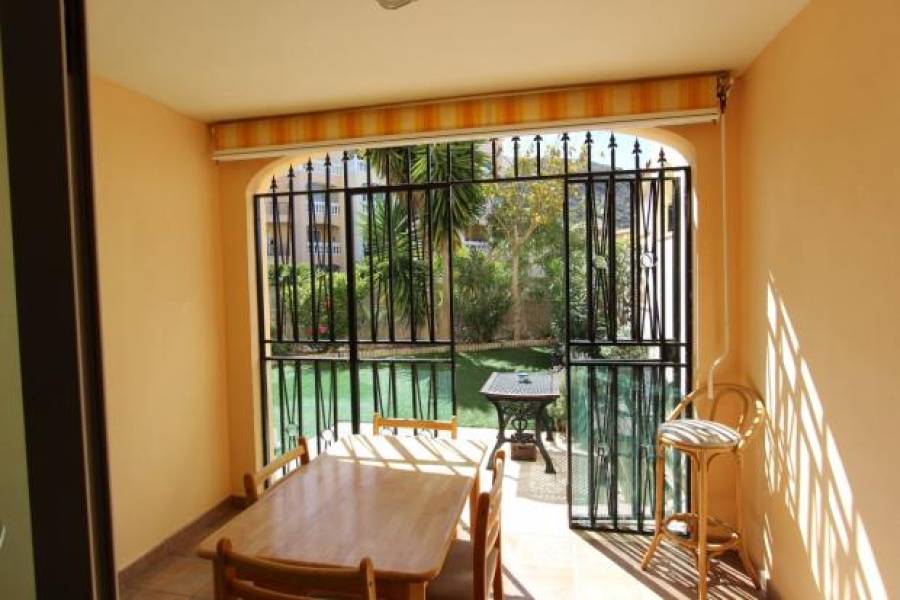 Muy bien situado apartamento en planta baja con un jardín muy grande y de fácil mantenimiento de 150 m2. Este apartamento tiene 2 dormitorios grandes con armarios empotrados y 1 baño. Cocina independiente totalmente equipada, que conecta con la zona de estar y comedor amplio y luminoso. Excepcional para este apartamento es: no existen umbrales o escaleras, incluso hasta la piscina. Perfecto para las personas con problemas de movilidad. El apartamento está decorado moderno y totalmente amueblado. El complejo está muy bien cuidado y ofrece una hermosa piscina comunitaria rodeada por un jardín con plantas tropicales. La ubicación es muy tranquila, a poca distancia de la playa y los diferentes bares y restaurante cercano.. 230m2 Parcela. 82m2 interior. 150m2 de jardín. comunidad - 325 euros cada 3 meses