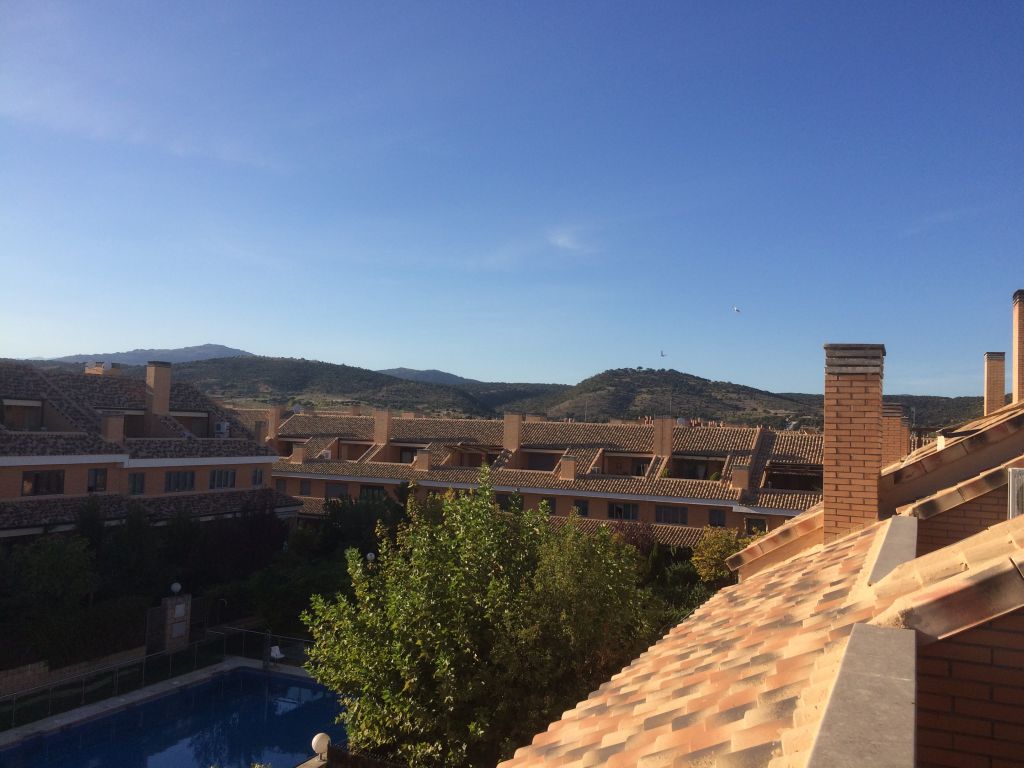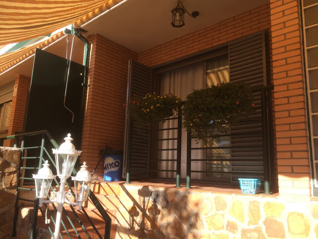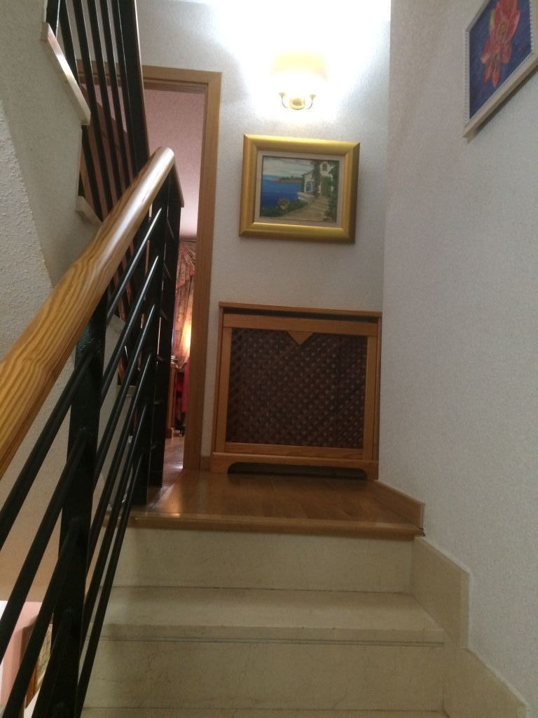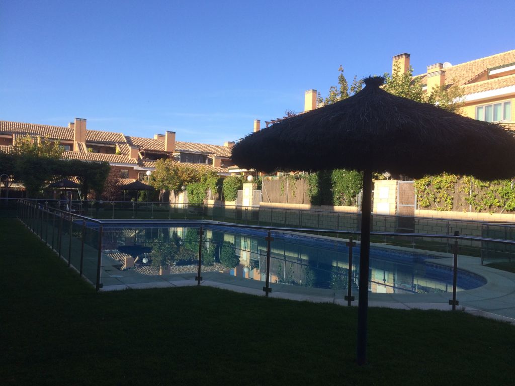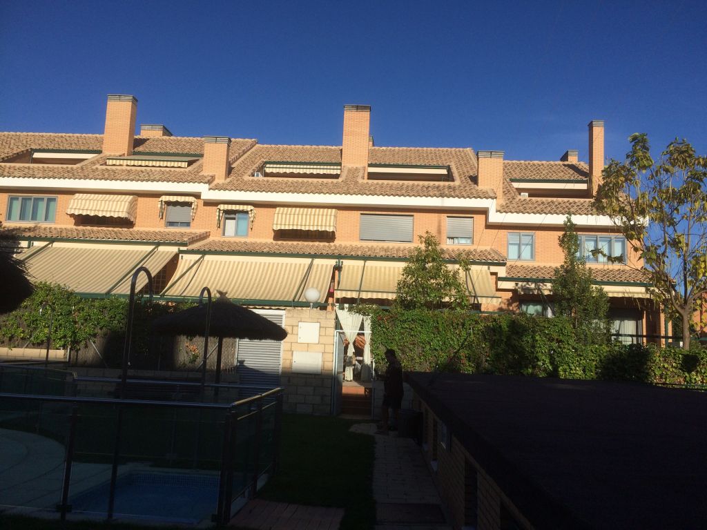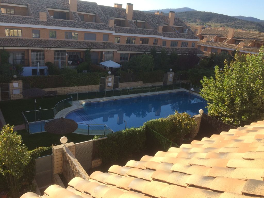 Chalet Adosado en Urbanización cerrada, de 300 m2 en 3 plantas, muy luminoso, en un enclave natural, muy silencioso. En la planta baja dispone de salón amplio mas comedor con salida a terraza en planta baja comunicando con la piscina comunitaria. Cocina totalmente amueblada con office incorporado. En primera planta se encuentran el dormitorio principal de 35 m2 con baño completo incorporado; 2 Dormitorios dobles muy amplias con terraza, Baño completo de uso común para la planta. En la segunda planta ( Buhardilla ), dispone de 1 dormitorio individual con aseo, estancia de ambiente lúdico con salida a terraza. El sótano dispone de amplia plaza de garaje con trastero y almacenamiento lateral, y una bodega con barra y mesa de comedor realizada a medida con madera maciza. . Dispone de la mejora de circuito cerrado a los radiadores mediante chimenea de leña, con un consumo mínimo en Invierno.. Centros comerciales y servicios a 5 minutos.
