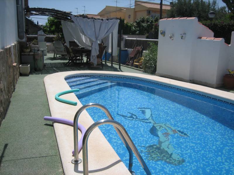 Magnífico adosado en San Juan de Alicante, en zona residencial muy tranquila, a 5 minutos andando del centro del pueblo. Vivienda en tres alturas, de 4 dormitorios dobles con armarios empotrados, tres cuartos de baño completos, dos con ducha y otro con bañera de hidromasaje, dos salones con chimenea, jardín de casi 200m2 con piscina privada, cenador con barbacoa y porche cubierto. Los suelos en planta sótano y planta baja son de gres, y el planta primera de tarima. La carpintería exterior de toda la vivienda de aluminio con doble cristal. Contraventana tipo veneciana de aluminio. Carpintería interior de madera de pino.