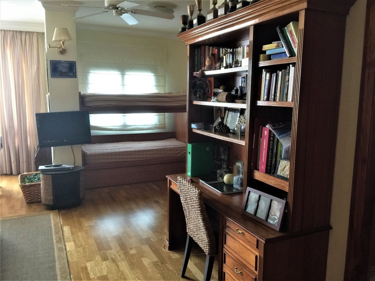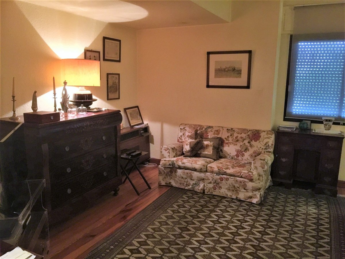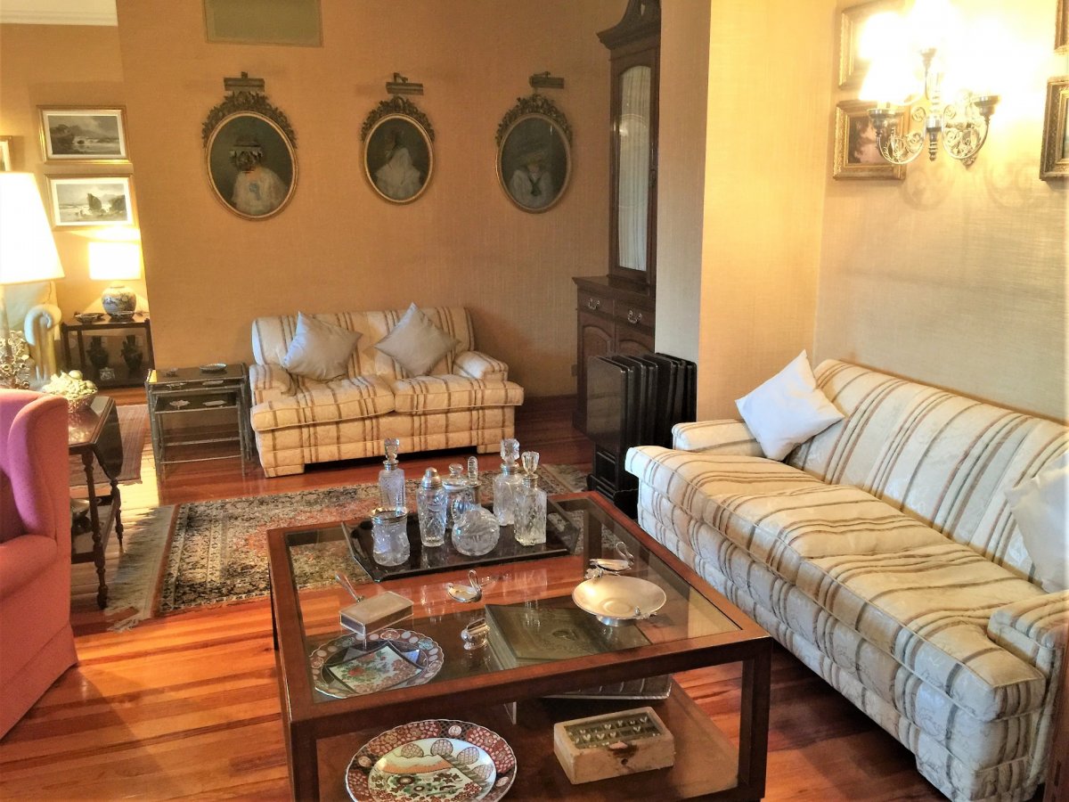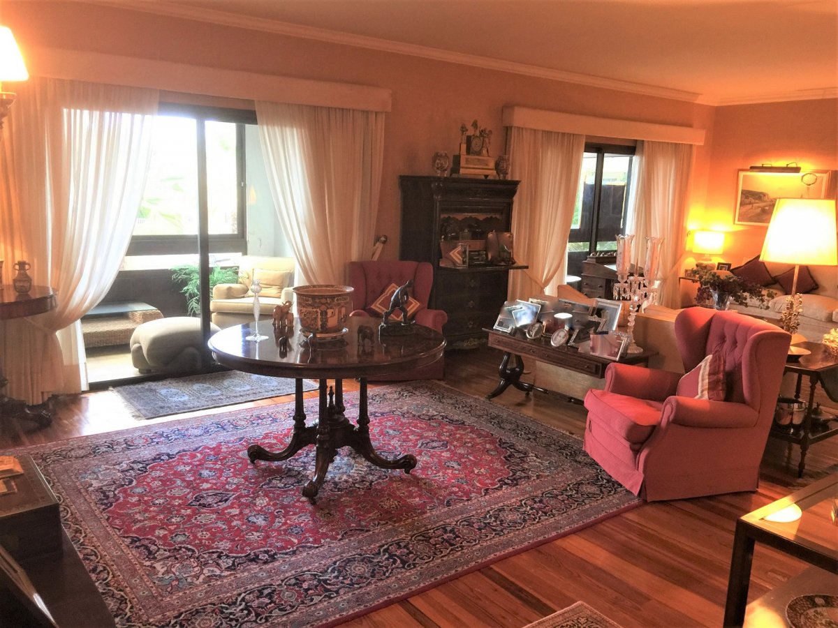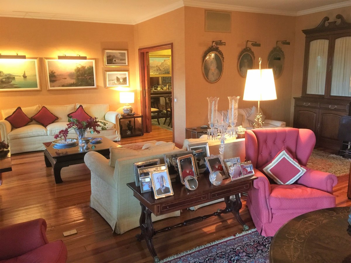 Gran piso en Pino de Oro que resulta de la unión de 2 viviendas realizado en construcción que ocupa toda la planta del edificio del que se adjunta plano en su configuración actual. En su distribución la vivienda dispone de un recibidor que da a un gran salón central de más de 60 m2 desde el que se accede a dos terrazas acristaladas a la calle de unos 7 m2 cada una y que tiene como anexo un comedor. 4 dormitorios dobles, uno de los cuales es la unión de otros dos con varios armarios empotrados más un dormitorio de servicio, 5 baños y un aseo. Un vestidor en dormitorio principal. Un despacho doble anexo al salón. Cocina amueblada con solana. La vivienda dispone además de dos zonas habilitadas como zonas de lavado y planchado y zona de almacenamiento. Suelos de madera en toda la casa, múltiples armarios empotrados. El precio anunciado incluye una plaza de garaje individual. Posibilidad de plaza simple adicional por 20.000 euros o plaza doble en precio a convenir. También disponible a convenir trastero de unos 20 m2. Edificio emblemático con zonas ajardinadas y portero.