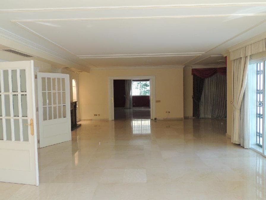 Chalet aislado de tres alturas compuesto por seis dormitorios, cinco baños y dos aseos. Se encuentra situado en la localidad de Alcobendas, provincia de Madrid.Vivienda distribuida en tres plantas. La planta sótano cuenta con garaje para tres coches, bodega, cuarto de depuradora, cuarto de jardinería, cuarto de instalaciones, trastero, un cuarto de baño, un aseo, sauna-gimnasio, despacho y closet. La planta baja cuenta con salón-comedor, cocina amueblada, dos habitaciones y un cuarto de baño, un aseo, despacho y biblioteca. La planta primera cuenta con cuatro habitaciones y tres cuartos de baño, dos de ellos tipo suite. Además cuenta con dos porches, piscina privada y jardín.Cuenta con puerta de entrada acorazada, puertas de paso de madera maciza, armarios empotrados, ventanas correderas Climalit en aluminio blanco lacado, pintura plástica lisa en techos y paredes, molduras de escayola y suelos de mármol, todo ello en buen estado de conservación. Dispone de agua caliente de gas natural, instalación de aire acondicionado, dos chimeneas e instalación de alarma de seguridad. Vivienda unifamiliar adosada de dos alturas sobre rasante destinadas a vivienda y una bajo rasante destinada a garaje. Es del año 1988 y se encuentra ubicada en el exclusivo barrio de la Moraleja, junto al Campo de Golf.La Moraleja es una urbanización residencial situada al sur del municipio de Alcobendas. La tipología de viviendas del conjunto de la urbanización es la unifamiliar aislada y ocho conjuntos de zonas urbanizaciones con chalés adosadas, pareadas e independientes localizados en la zona este. La urbanización cuenta con cámaras de tráfico para vigilar las calles. Hay tres entidades de conservación con el fin de potenciar la vigilancia de la zona. Además cuenta con su propio servicio de vigilancia 24 horas y un sistema de alarmas conectado. La zona cuenta con buenas comunicaciones por carretera, líneas de autobús y estación de metro y dispone de un alto nivel en servicios e infraestructuras.