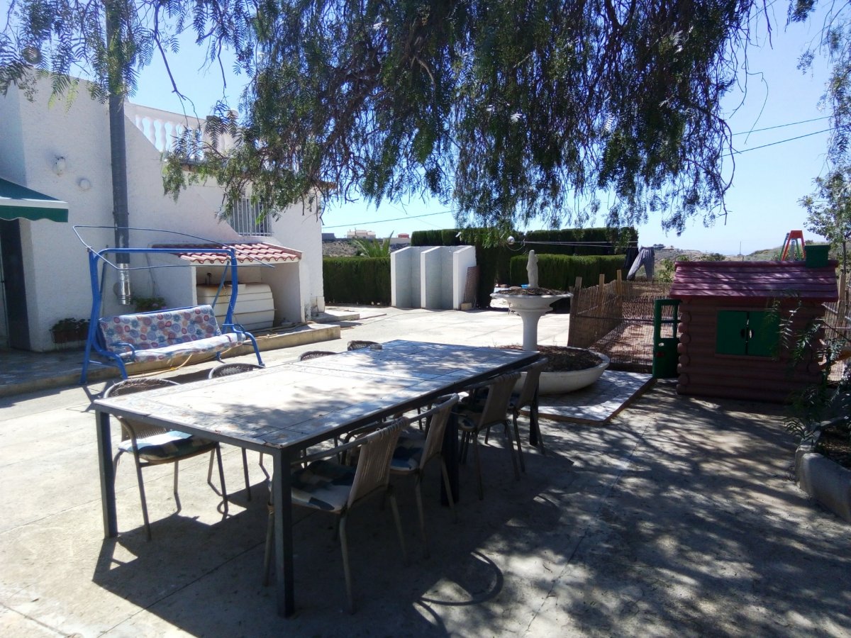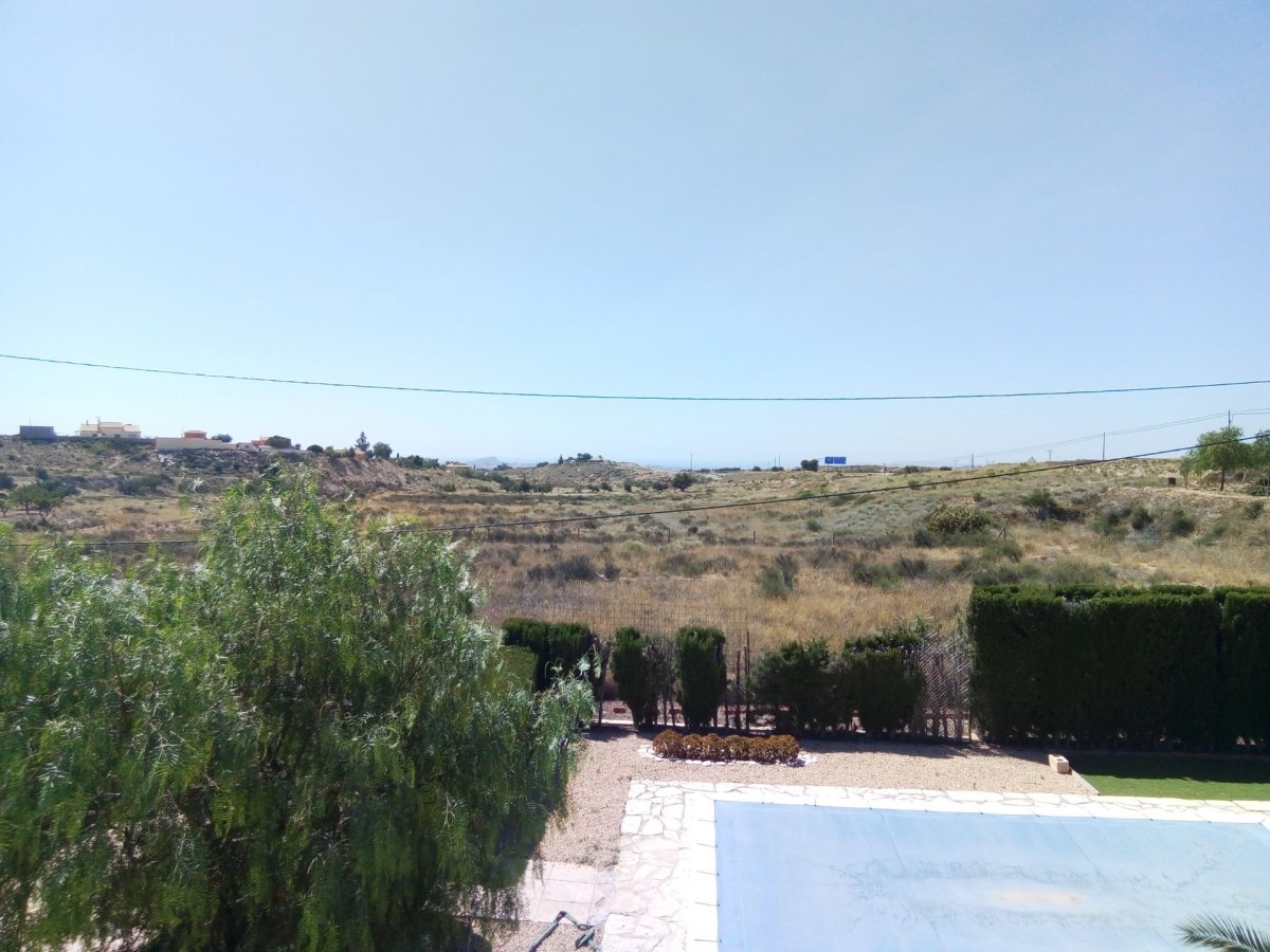Chalet en parcela urbana de 4.500 mts y con múltiples posibilidades, residencial o comercial. Vivienda en una sola planta y distribuido en 5 dormitorios, 4 dobles y 1 sencillo, un cuarto de baño exterior y muy amplio, salón comedor con chimenea y split de aire acondicionado y cocina office. En el jardín hay varias zonas con ambientes diferentes, por un lado está la zona de cenador, con barbacoa de obra y otra móvil, y desde el que se ve toda la costa, la zona de la piscina es totalmente independiente y vallada, existe una zona de árboles frutales, un trastero de aproximadamente 16 mts. y una construcción anexa de unos 50 mts con cocina, agua, luz y chimenea de carbón.. La parcela es urbana y se puede segregar, está ubicada en una calle de acceso único y exclusivo para la vivienda, en la entrada hay un extensa explanada que permite el aparcamiento de un gran número de vehículos.. La finca se puede destinar a uso como vivienda, restaurante e incluso es ideal para la apertura de cualquier negocio en el que se requiera un espacio abierto.. Situada al lado del acceso a la autovía y a 5 minutos de San Vicente del Raspeig.
