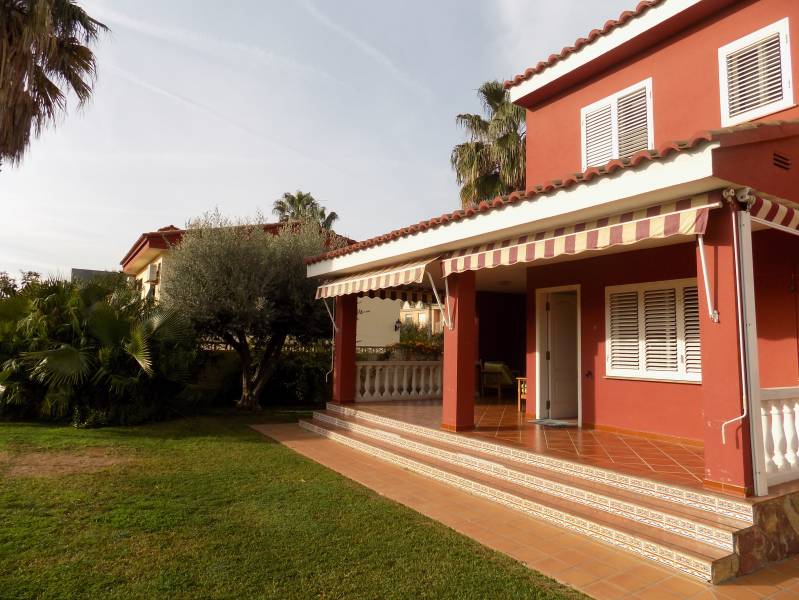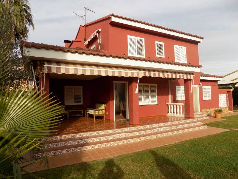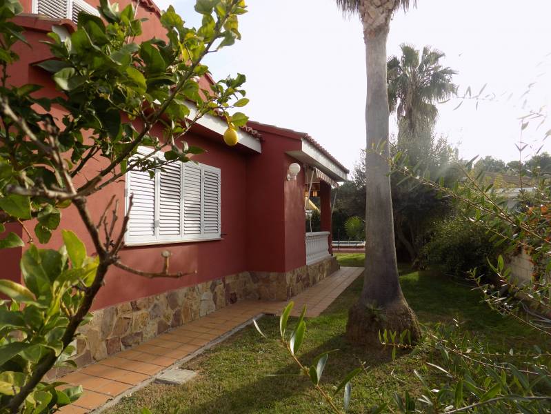 Villa con una gran parcela de 810 m2. muy bien cuidada y con todos los servicios en una de las mejores zonas de la costa dentro de un entorno natural como es el Pinar y junto al campo de golf. A solo 15 minutos caminando de la playa y a 10 minutos en coche del centro de Castellón. Excelente ubicación en una zona privilegiada de nuestra Costa de Azahar. Esta villa consta de dos plantas. En la primera se distribuye un salón comedor con ambas zonas diferenciadas y con acceso a una amplia terraza desde la que se divisa la piscina y zona de paellero / barbacoa con el pinar como fondo natural. Desde el vestíbulo de entrada se accede también a la cocina que dispone de un cuarto para plancha y lavado. Un baño de cortesía completa la planta baja desde la que se accede por medio de una amplia escalera, que arranca en el vestíbulo, a la planta superior donde se encuentran los tres dormitorios dobles y otros dos baños, uno de ellos incorporado al dormitorio principal. Desde este dormitorio se accede a una terraza desde la que se puede disfrutar de unas excelentes vistas.