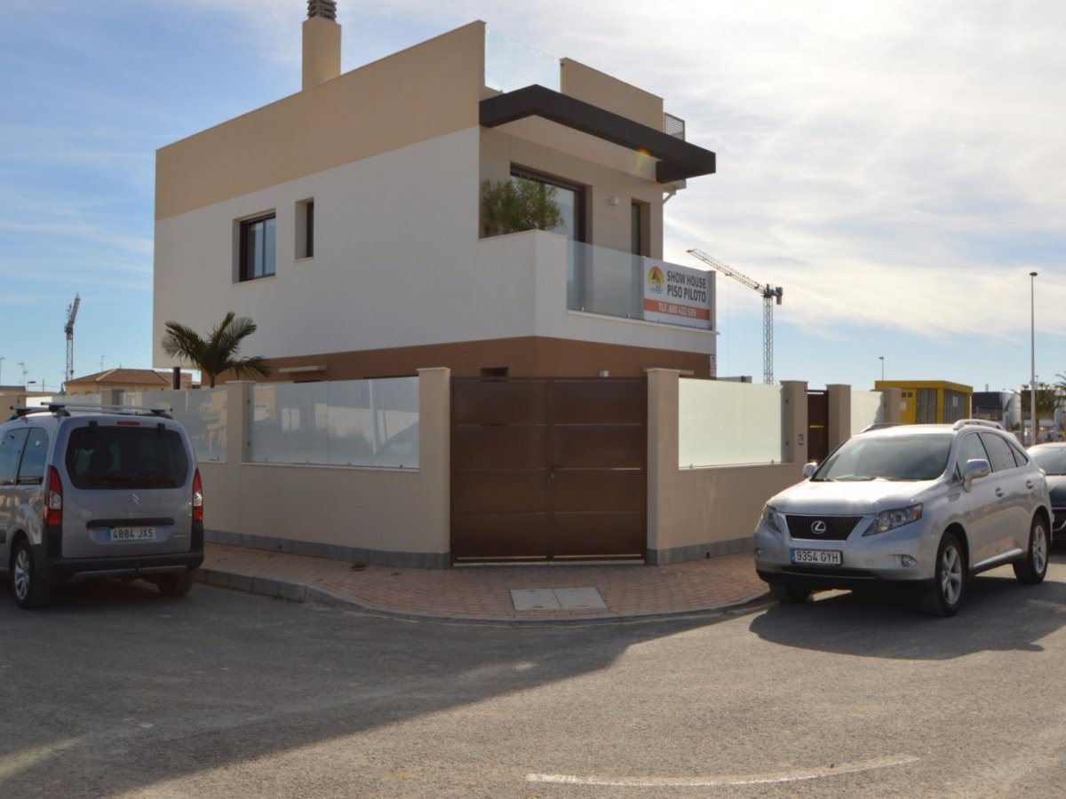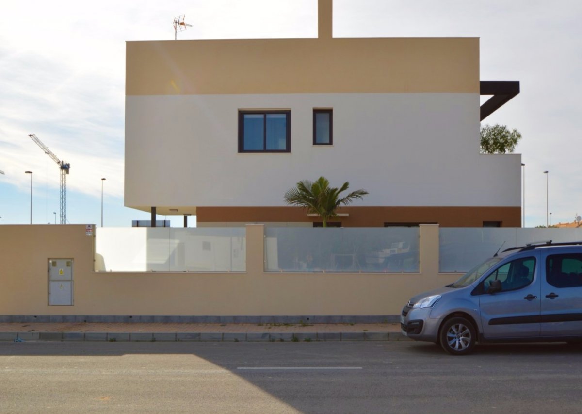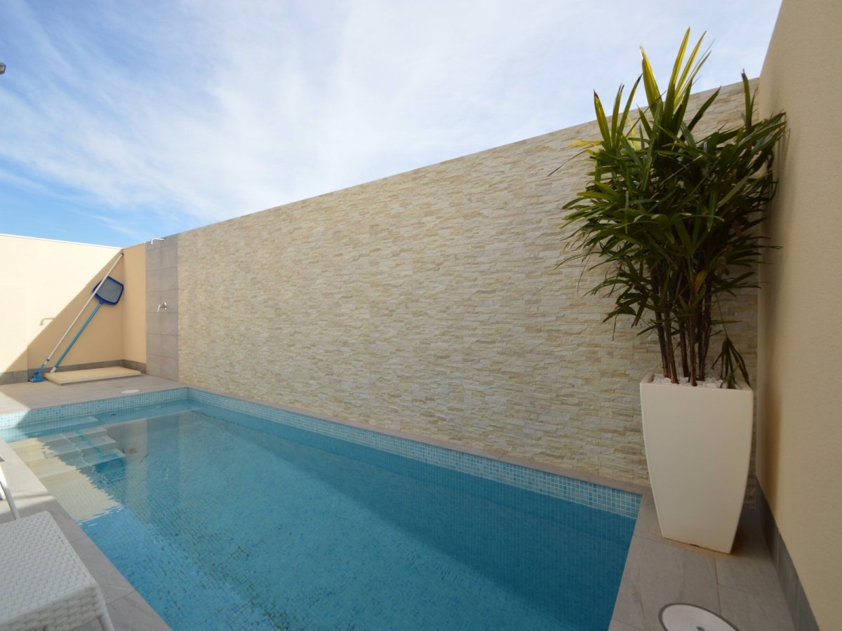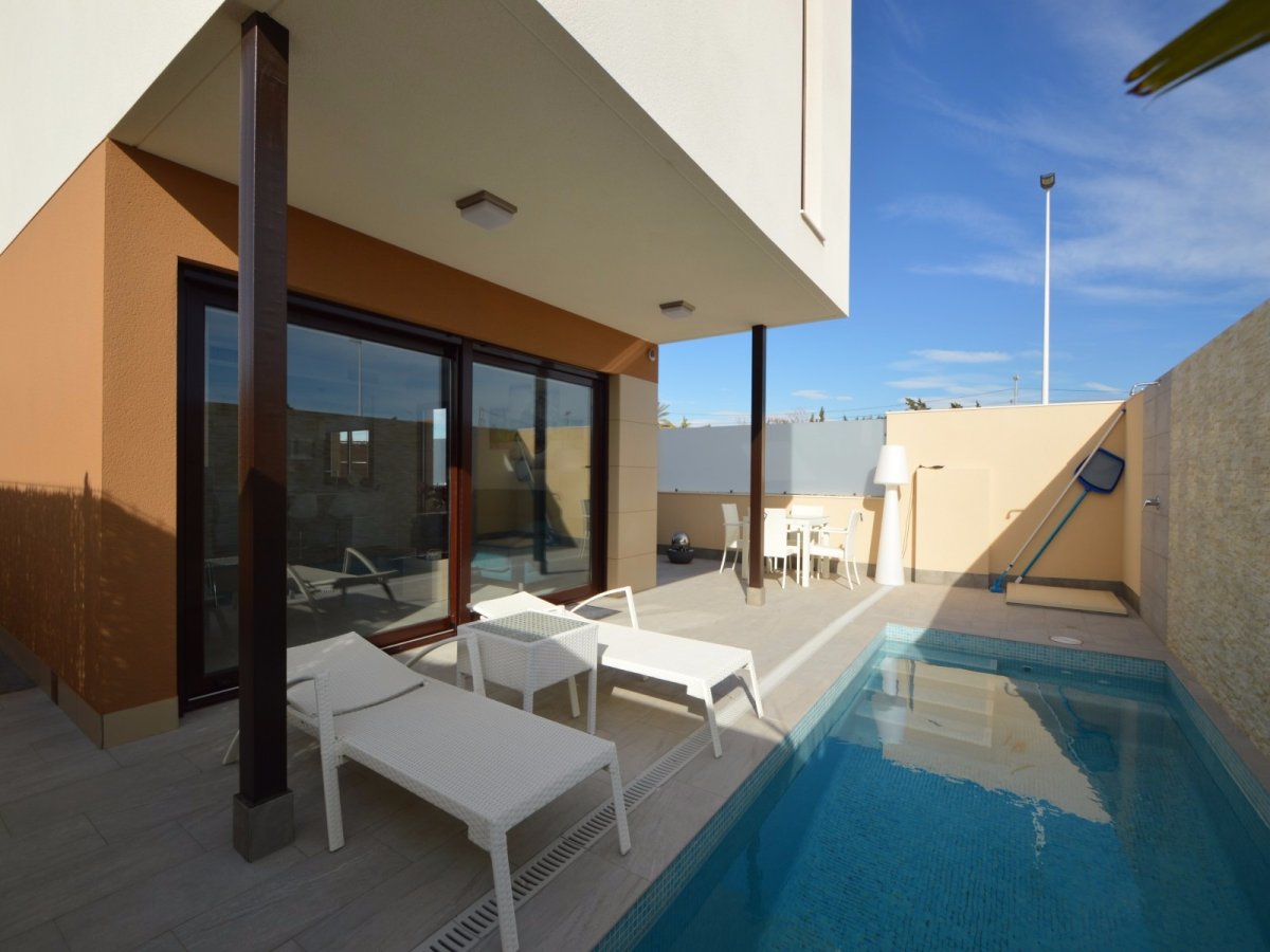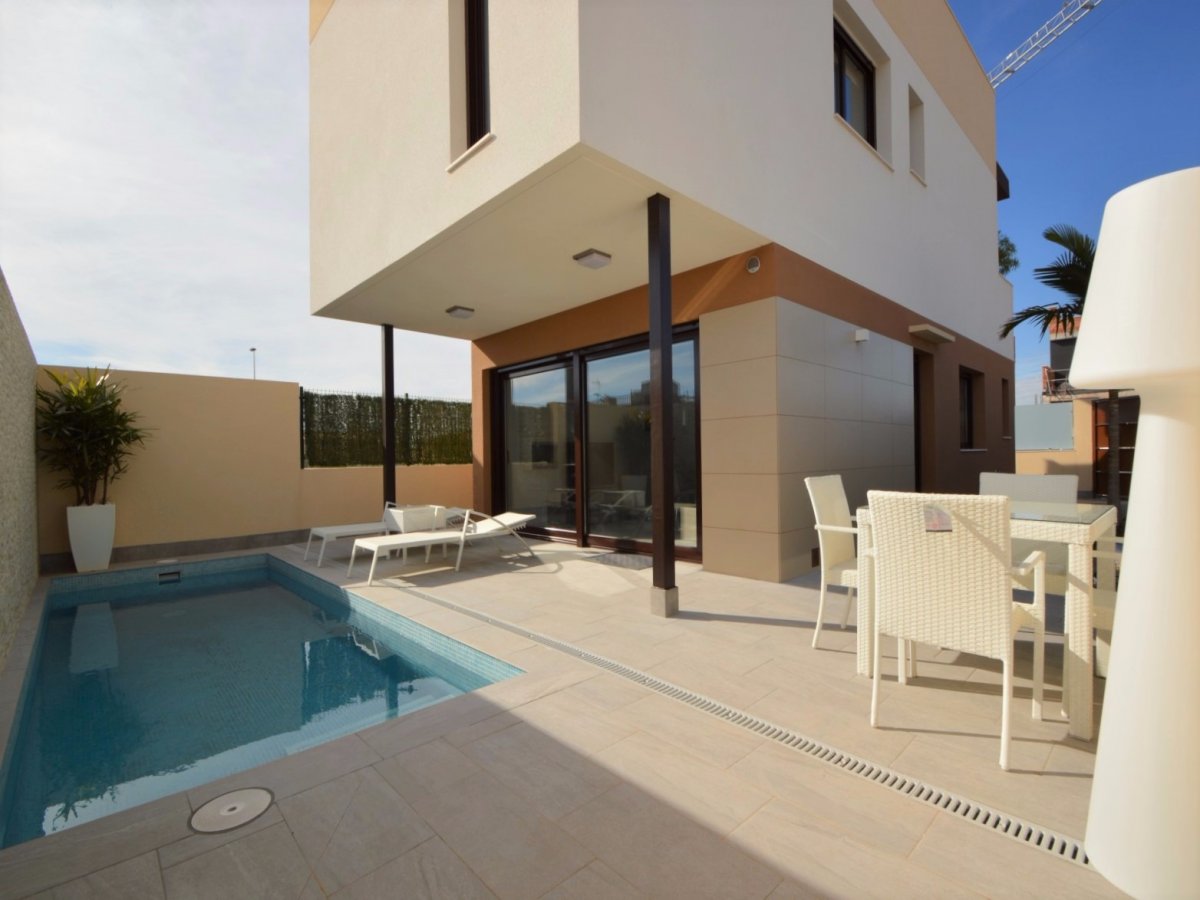 SE VENDEN VILLAS DE TRES DORMITORIOS EN SAN PEDRO DEL PINATAR, TOTALMENTE INDEPENDIENTES, SIN COMUNIDAD DESDE 249.000 EUROS. EDIFICADA SOBRE UNA PARCELA DE 156METROS. EDIFICACION COMPUESTA DE DOS PLANTAS, EN PLANTA BAJA BAÑO, COCINA EQUIPADA CON MUEBLES Y ELECTRODOMESTICOS, SALON COMEDOR Y JARDIN CON ACCESO DE COCHE, PISCINA PROPIA, UBICADA JUSTO FRENTE AL SALON-COMEDOR. PLANTA PRIMERA COMPUESTA POR TRES HABITACIONES, BAÑO Y ACCESO A UNA TERRAZA EN LA TERCERA PLANTA PARA USO DE SOLARIUM. LA VIVIENDA TIENE POSIBILIDAD DE REALIZAR HABITACION EN PLANTA BAJA ( INTERESADOS PREGUNTAR PARA PODER VER PLANO DE DISTRIBUCION ). POSIBILIDAD DE HACER DISTRIBUCION DE VIVIENDA AL GUSTO DE LA PARTE COMPRADORA.