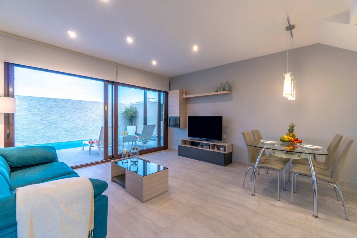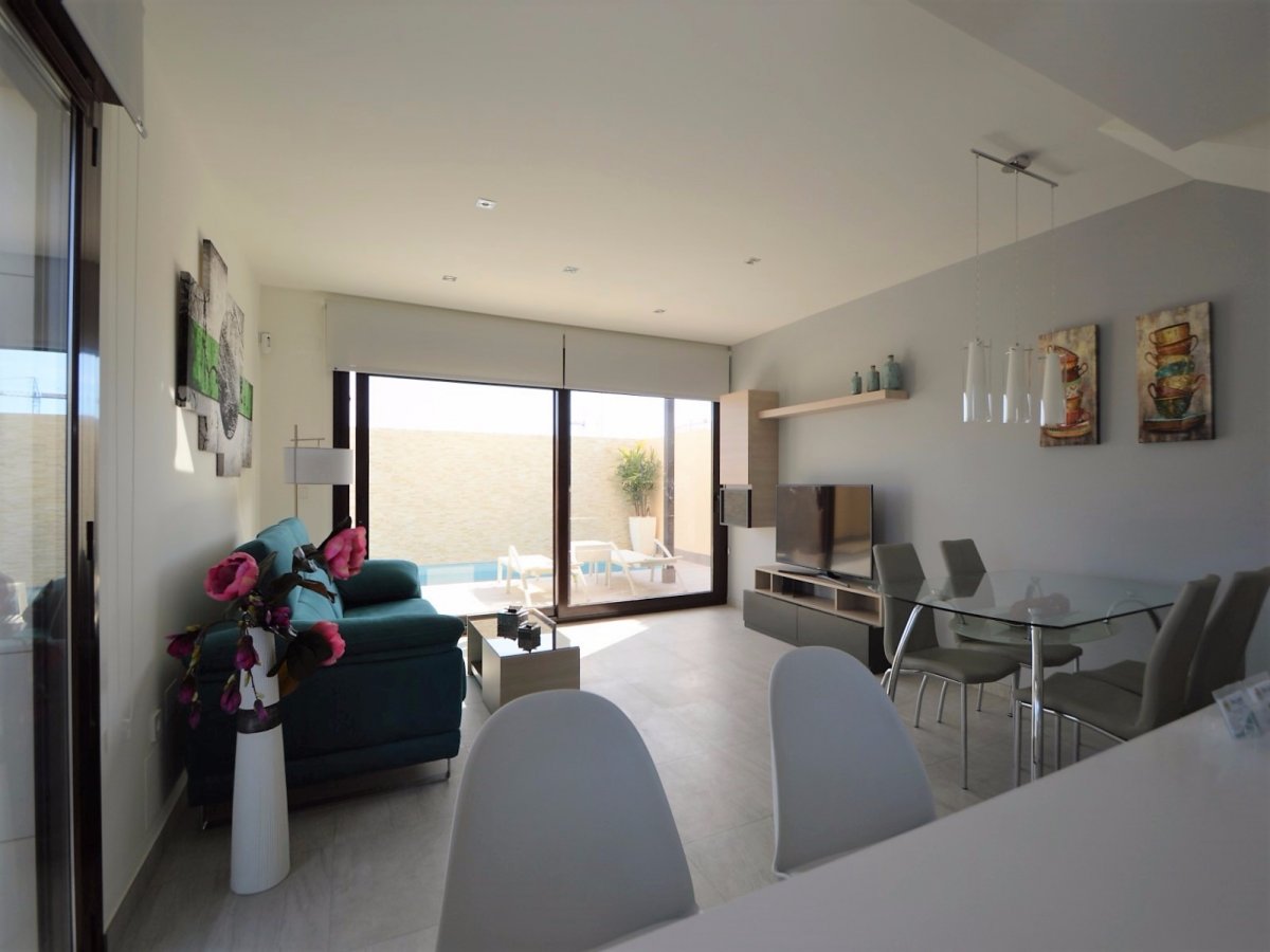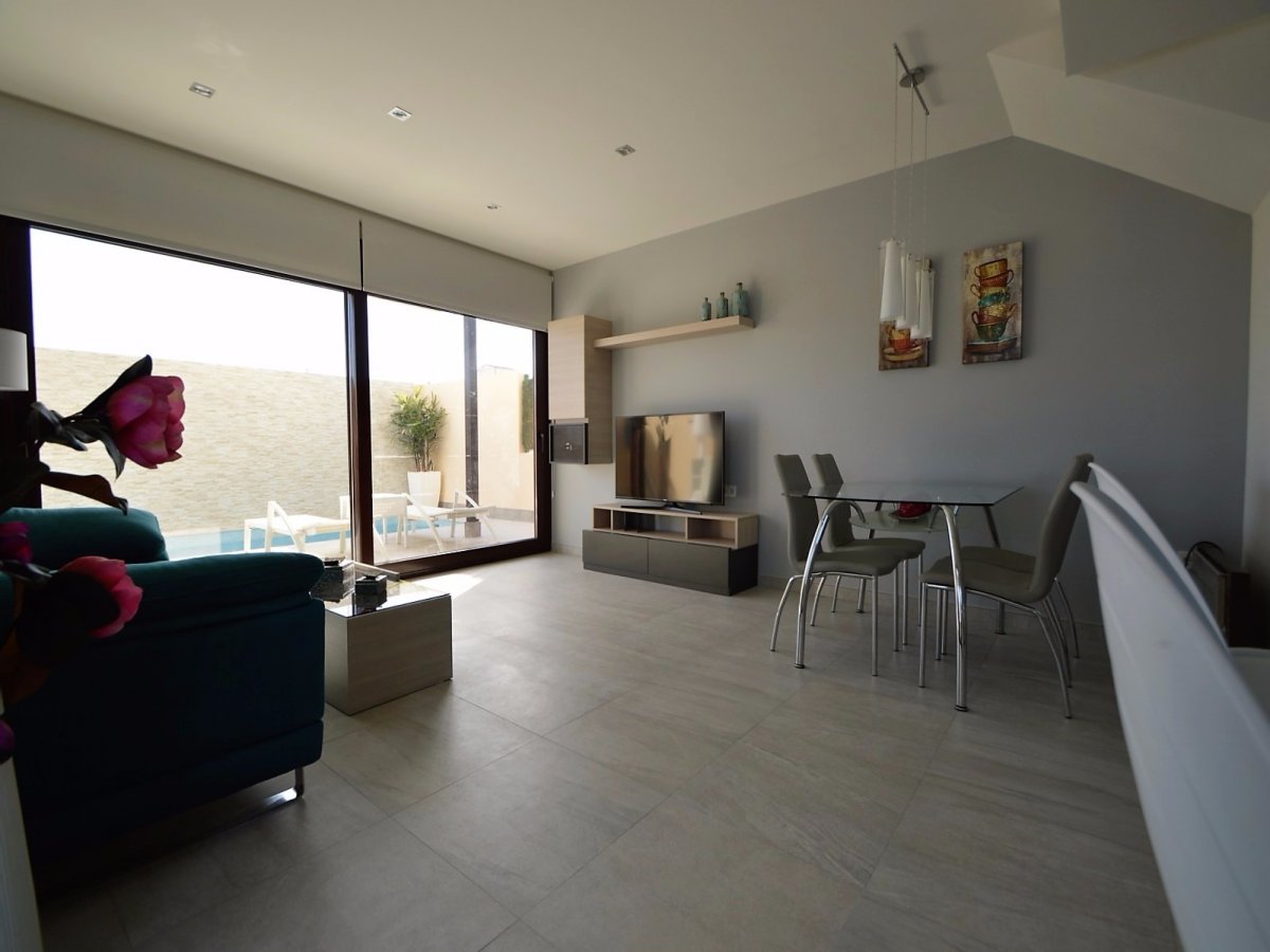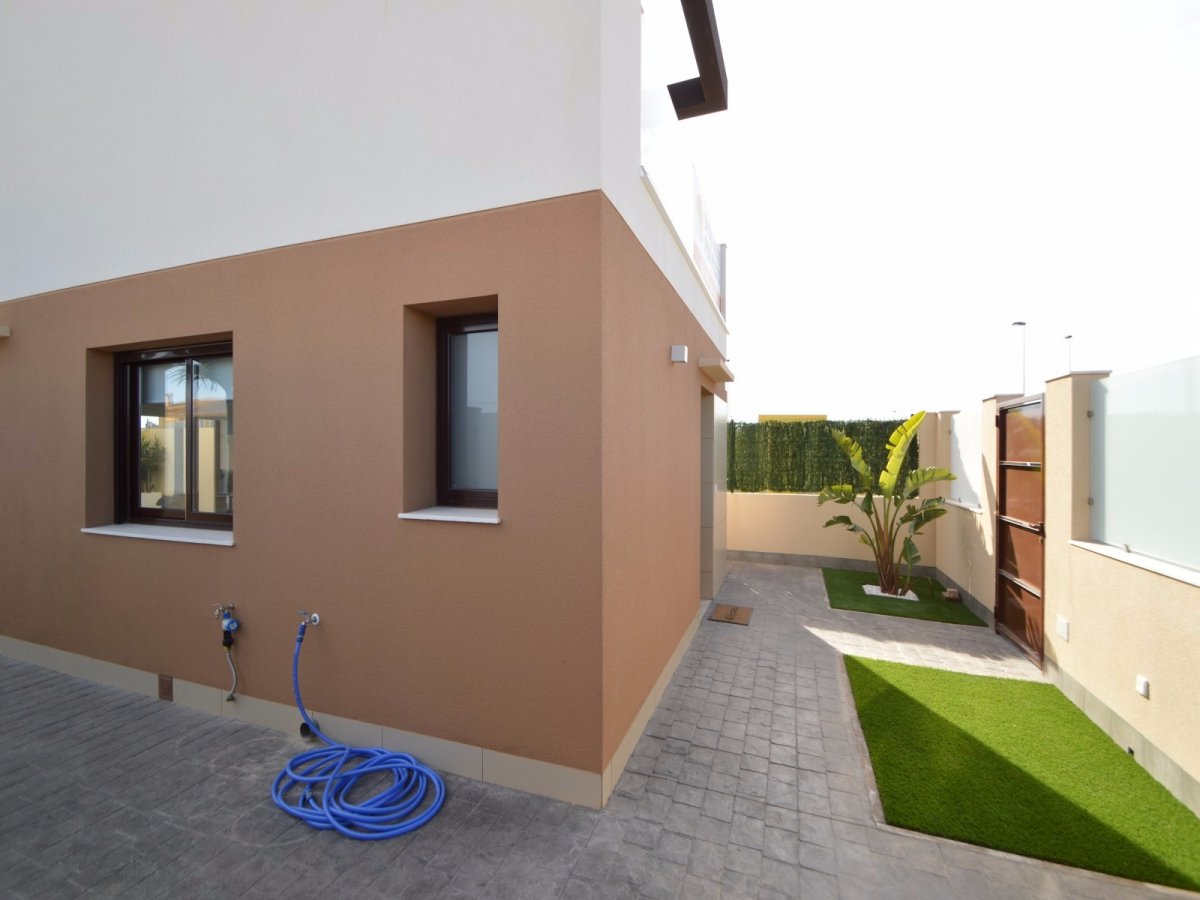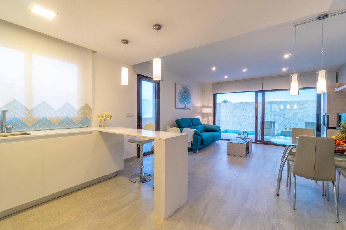 SE VENDEN VILLAS DE TRES DORMITORIOS EN SAN PEDRO DEL PINATAR, TOTALMENTE INDEPENDIENTES, SIN COMUNIDAD DESDE 249.000 EUROS. EDIFICADA SOBRE UNA PARCELA DE 156METROS. EDIFICACION COMPUESTA DE DOS PLANTAS, EN PLANTA BAJA BAÑO, COCINA EQUIPADA CON MUEBLES Y ELECTRODOMESTICOS, SALON COMEDOR Y JARDIN CON ACCESO DE COCHE, PISCINA PROPIA, UBICADA JUSTO FRENTE AL SALON-COMEDOR. PLANTA PRIMERA COMPUESTA POR TRES HABITACIONES, BAÑO Y ACCESO A UNA TERRAZA EN LA TERCERA PLANTA PARA USO DE SOLARIUM. LA VIVIENDA TIENE POSIBILIDAD DE REALIZAR HABITACION EN PLANTA BAJA ( INTERESADOS PREGUNTAR PARA PODER VER PLANO DE DISTRIBUCION ). POSIBILIDAD DE HACER DISTRIBUCION DE VIVIENDA AL GUSTO DE LA PARTE COMPRADORA.