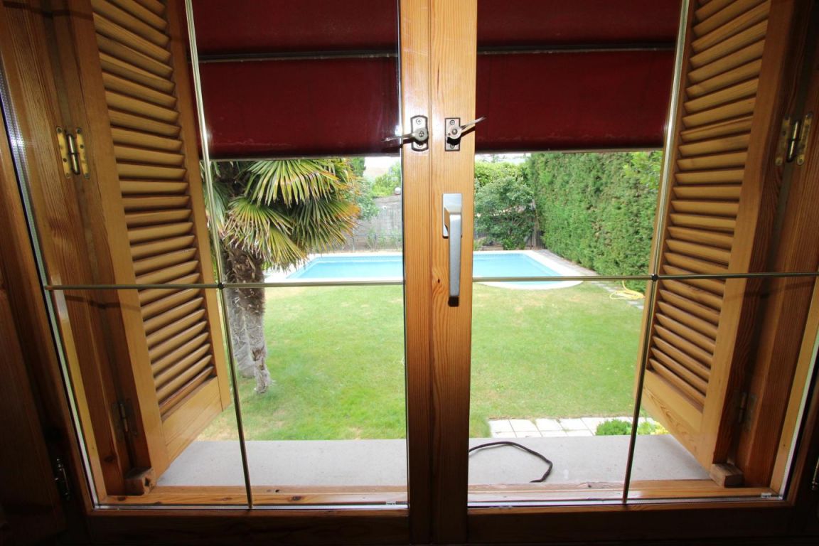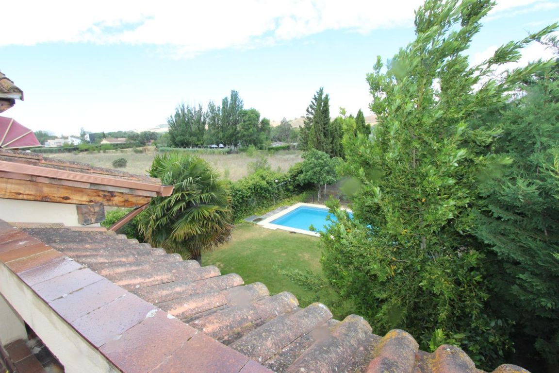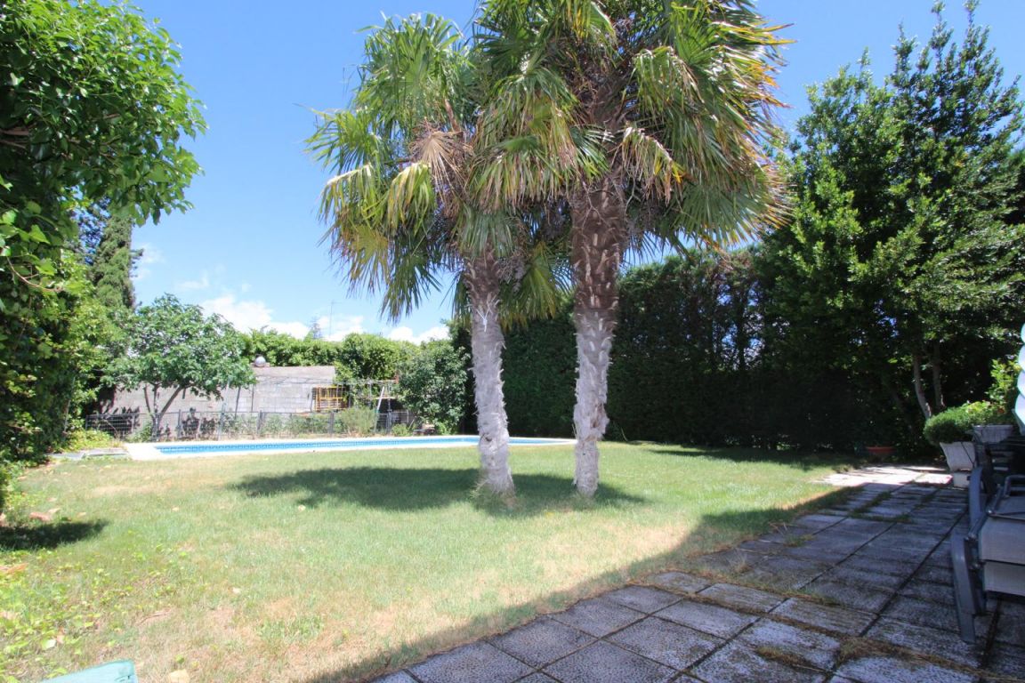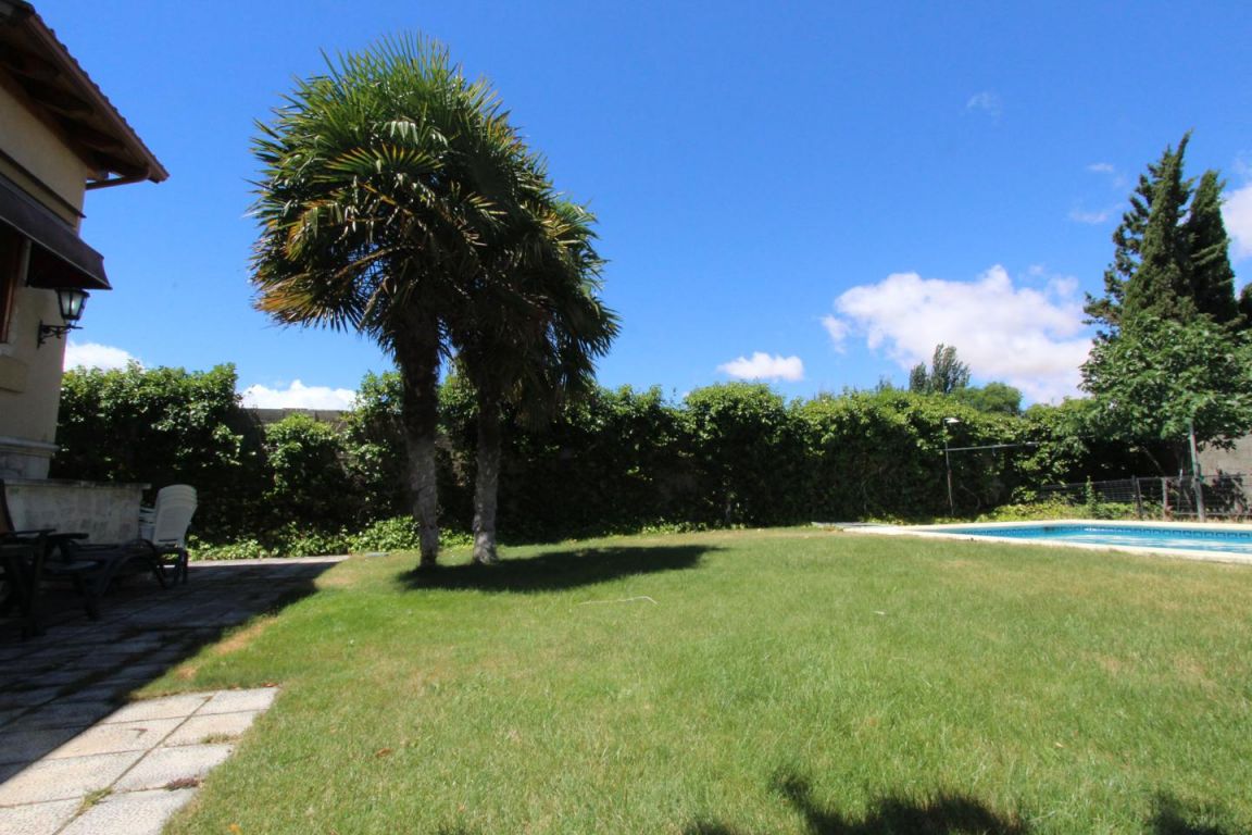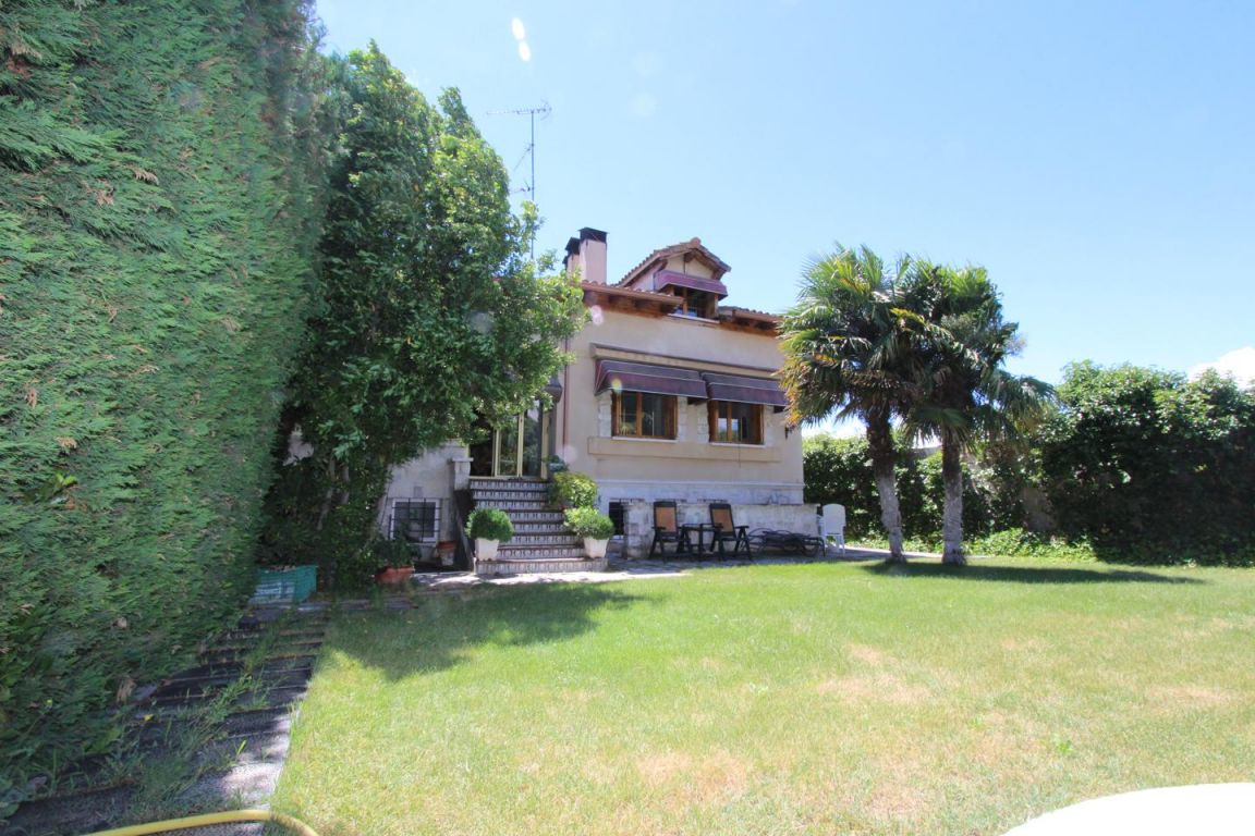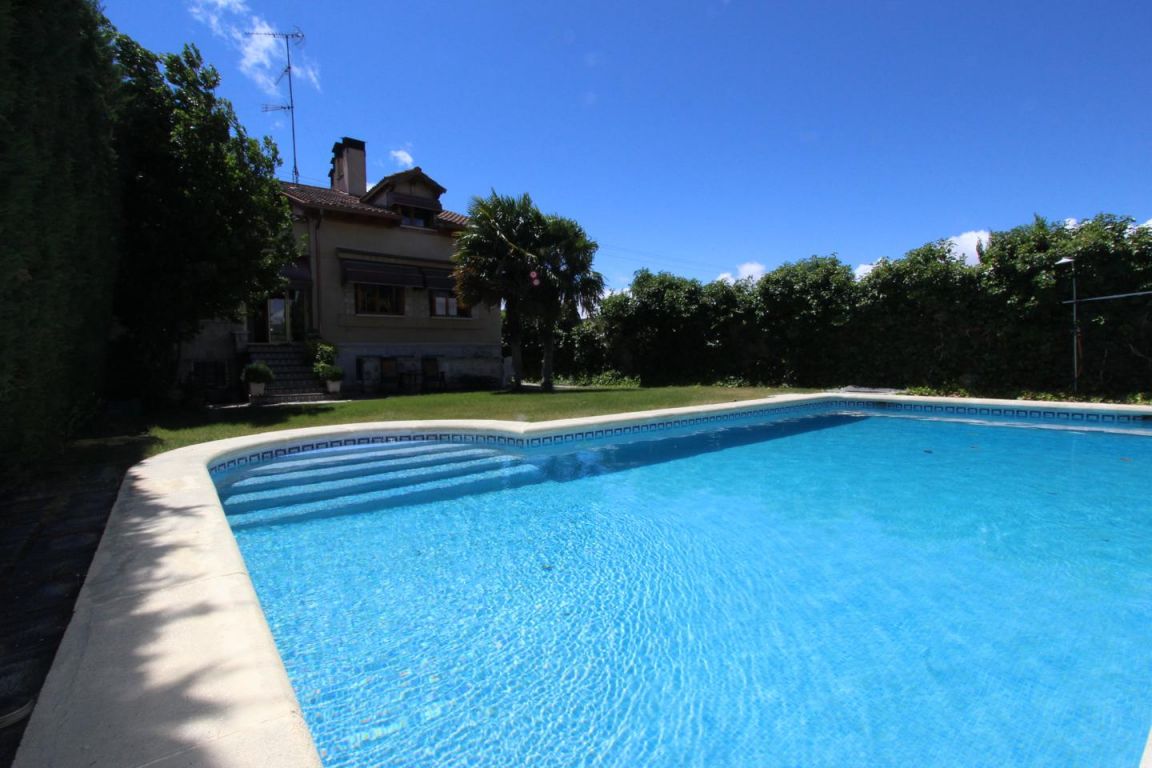 Este chalet de estilo castellano se encuentra en Camino Viejo de Simancas, Fantástico chalet pareado situado en una de las zonas más destacadas de Valladolid . La propiedad consta de 430m2 construidos, divididos en dos plantas sobre un terreno de 750m2. El chalet data del año 2003 y consta de excelentes calidades de construcción. En la planta principal se encuentra el hall de entrada desde el cual se accede a un amplio salóncomedor con chimenea , tres habitaciones y dos baños, uno de ellos en suit, gran porche cubierto que da acceso a un bonito jardín con piscina. En la misma planta se encuentra la amplia y luminosa cocina perfectamente equipada . En la segunda planta se encuentra un gran recibidor con mirador al espacioso salon de doble altura, un dormitorio con vestidor, un amplio baño con jacuzzi y grandes ventanales que dan a una hermosa terraza con impresionantes vistas a la que se accede desde el dormitorio. Todos los dormitorios cuentan con armarios empotrados perfectamente vestidos. La planta sótano totalmente acondicionada cuenta con trastero, aseo, cuarto de la calefaccion un pequeño lagar y una gran bodega de estilo castellano con horno ,chimenea y cocina. ademas de un gran garaje para cuatro coches . . Zona residencial, con colegio muy cercano y muy tranquila con la ventaja de encontrarse a pocos minutos del centro urbano y con buenos accesos . También cuenta con trasporte público muy bien comunicado, con parada a escasos metros .